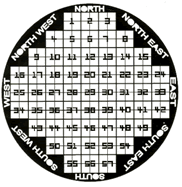 普通載網(wǎng)上呈菱形分布57個(gè)小方塊,每個(gè)小方塊分別以1-57數(shù)字標(biāo)識(shí),一目了然。每個(gè)區(qū)域又被細(xì)分為4份,這樣整個(gè)載網(wǎng)上就有228塊被定位了的區(qū)域。