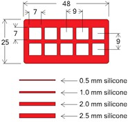 硅膠隔離貼片,又稱硅膠墊密片、試劑壩、硅膠貼封片等。可用于同一芯片上的多樣品反應(yīng),珍貴微量樣品的檢測等等。隔離片可使加樣更準(zhǔn)確,防止樣品間的交叉反應(yīng),且與配套雜交反應(yīng)蓋片合用還可使加樣更容易,反應(yīng)和雜交更均勻,防止反應(yīng)液揮發(fā),避免空氣中灰塵污染,是各種微陣列芯片進行雜交或免疫反應(yīng)的理想輔助工具。該產(chǎn)品可以壓力粘貼,可干凈去除。硅膠屬于惰性材料,對生物樣品無不良影響,如果用來培養(yǎng)敏感性細胞,建議選用新型的無色透明的CultureWell硅膠貼片。