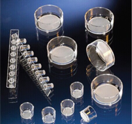 又稱(chēng)細(xì)胞培養(yǎng)小室,簡(jiǎn)稱(chēng)CCI或者CC Inserts,便于大部分沒(méi)有基質(zhì)包裹的細(xì)胞培養(yǎng)使用。CCI主要配套NUNC公司的細(xì)胞培養(yǎng)板使用。細(xì)胞接種到小室底部的膜上后,套入培養(yǎng)板的孔,浸入培養(yǎng)基培養(yǎng)。我們提供的聚碳酸脂膜(polycarbonate),它們均具有良好的細(xì)胞附著和生長(zhǎng)特性,極大的提高了細(xì)胞的分化水平。