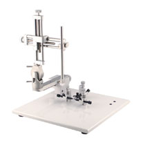 Stoelting創(chuàng)造性在的一個基座上放置兩個定位單元,每個單元都帶有獨立的耳棒。通過引導(dǎo)螺紋,操作臂可以控制左右和上下方向的移動;前后控制通過楔形榫頭來進行,在每個方向上都可以移動80mm 。耳棒的高度可以獨立調(diào)節(jié),垂直方向的刻度采用了激光雕刻技術(shù),能夠非常新晰的讀出耳棒的高度。輕質(zhì)的聚甲醛樹脂耳棒,前端逐漸變細;特殊設(shè)計的下頜夾持器;非植入性橡膠頭。