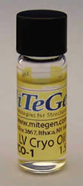 LV CryoOil™,低粘度低溫保護(hù)油是所有一致的含氟聚合物油中粘度最低的(Paratone oil和其它植物油的粘度相當(dāng),而LV CryoOil™的粘度相當(dāng)于其1/10)。通常,晶體在此油中浸入,緊接著提起輕輕甩去多余的油,即可獲得大約10um厚的包被。LV CryoOil™油可以在真空下應(yīng)用,它有著非常低的氣壓,極好的化學(xué)惰性,極好的熱穩(wěn)定性。