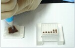 將多達150個組織塊排列在一個小小的玻片大小的蠟塊內,這就是組織芯片( tissue microarray ) ,與基因芯片,蛋白質芯片和細胞芯片等一樣,是一種新型的高通量、快速分析多樣本的研究工具。