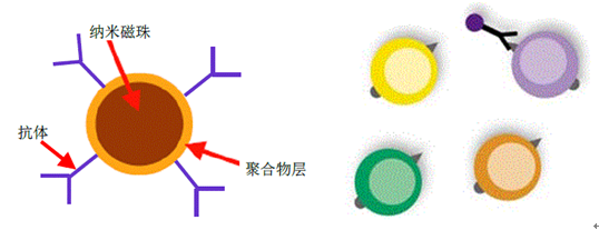 2、磁性微珠直接或者間接偶聯(lián)在抗體上,從而與細胞相連進行標記(如下圖);