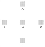 66108-01 10x10 grids of 0.1mm squares at 5 positions. Indexed 1-10 along top, A-J down side