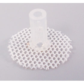 與所有標(biāo)準(zhǔn)的皮膚扣件一樣,小鼠的皮膚扣包括硅膠筒和圓形滌綸網(wǎng)狀小片兩部分,是動物的手術(shù)中不可或缺的物件。硅膠筒內(nèi)徑為0.123英寸;滌綸網(wǎng)狀小片的直徑大約1英寸。皮膚扣作為導(dǎo)管通過皮膚的一個通道,協(xié)助完成導(dǎo)管的取樣或定量給藥工作。皮膚扣可替代小動物的jacket,可保護導(dǎo)管通過點的皮膚免受損傷,降低感染的幾率。也可與外徑為0.124英寸的標(biāo)準(zhǔn)不銹鋼彈性細(xì)絲完美匹配。