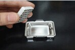 3.將帶有微芯的蠟塊放入不銹鋼底模base mold,注意方向:切面朝下.置入70度烤箱30-60分鐘,待蠟塊完全透明,取出