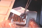 2 用Quick-Ray取樣器取出組織柱,放入預鑄蠟塊recipient block