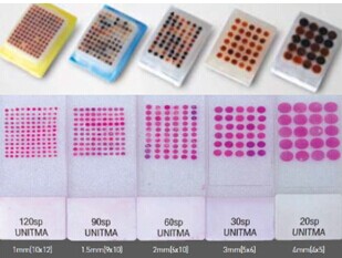 將多達150個組織塊排列在一個小小的玻片大小的蠟塊內,這就是組織芯片( tissue microarray ) ,與基因芯片,蛋白質芯片和細胞芯片等一樣,是一種新型的高通量、快速分析多樣本的研究工具。