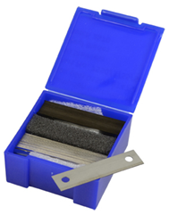 配套切片機使用的不銹鋼刀,Model 7550-1-SS。根據(jù)客戶的反饋修訂設計出來的一款受到客戶稱贊的切片刀,嶄新的包裝易于拿取刀片,雙面刃形,鋒利的刀鋒,硬度達56洛氏硬度??梢砸淮涡允褂没蛘邼M足一天的工作后換刀。使用的刀夾必須是2003年以后生產(chǎn)的新的機型Vibroslice。38mm x 9mm x 0.5mm