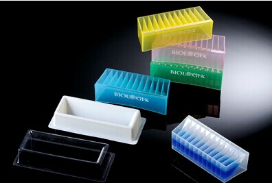提供兩種規(guī)格的試劑槽:單道和12道。白色單道試劑槽:聚苯乙烯材質(zhì)。試劑槽的凹槽容量最大55毫升,可以與單一移液器或者多渠移液器配套使用。伽馬射線消毒,獨(dú)立袋裝,50個(gè)/箱。
