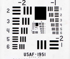 美國空軍1951年分辨力測試圖一直是世界上檢測垂直與水平分辨力的通用標準,是符合MIL-STD-150A標準的分辨力測試圖案,由美國空軍于1951年創(chuàng)建。1951 USAF分辨力測試圖目前仍廣泛地應(yīng)用于測試光學成像系統(tǒng)(如顯微鏡和相機)的分辨能力。這種圖案包括幾組由三條短線構(gòu)成組合,短線的尺寸從大到小。成像系統(tǒng)無法辯明的最大短線組為其分辨能力極限。