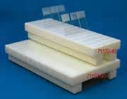 白色高密度聚丙烯材料制作,完全化學(xué)惰性,其上有13道傾斜的溝槽(10度角),在玻片的清潔,染色,干燥以及控掉多余的鏡油等方面發(fā)揮功能。適于25mm×75mm的標(biāo)準(zhǔn)載玻片,可以裝載40片。