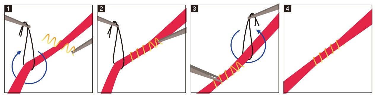 小鼠雙側(cè)頸總動(dòng)脈縮窄術(shù)一般在體視顯微鏡下操作,用無磁性精密鑷子拿取微彈簧圈,注意彈簧圈的鋼絲很細(xì),夾持不好容易崩走丟失,操作務(wù)必小心謹(jǐn)慎,不要扎破操作的血管。